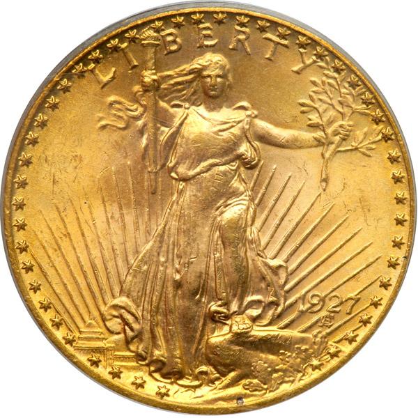 1927. PCGS graded MS-64. Golden-orange in color (PCGS # 9186) .
