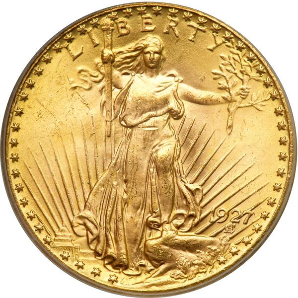 1927. PCGS graded MS-64. Slight gold tone. a lustrous, well struck example of this popularly collected issue (PCGS # 9186) .