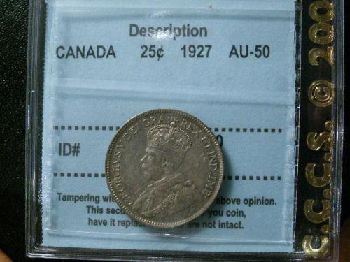 1927 25¢ CCCS AU50. Medium to heavy toning. Key date.