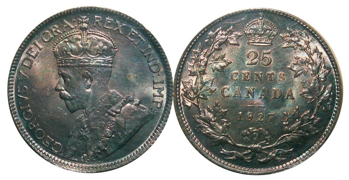 1927 25¢ ICCS MS64. Tough date in Choice Uncirculated