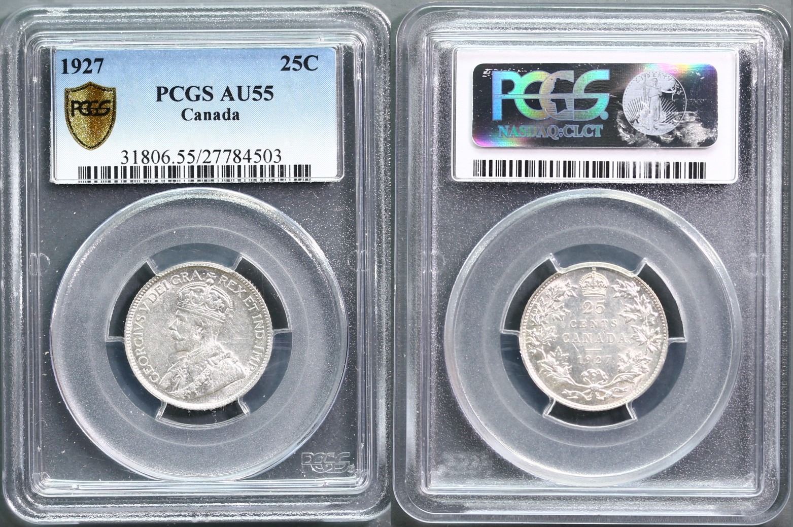 1927 25¢ PCGS Choice About Uncirculated-55. Bright white and lustrous example.