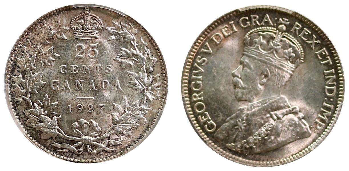1927 25¢ PCGS Choice Mint State-64 A splendid example with very strong lustre and attractive gold and russet tones.