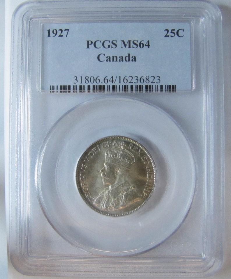 1927 25¢ PCGS MS64. Key issue in superb condition. Attractively toned with great lustre.