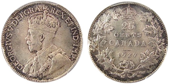 1927 25¢ PCGS MS66. Stunning TOP 2 example with gold to greenish tones over lustre and cream like mix. Must be viewed.