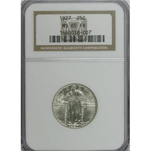 <B>1927 25C MS65 Full Head NGC.</B></I> This fully lustrous Gem displays sharply impressed design elements. Occasional wisps of gold-tan color adhere to each side, both of which are nicely preserved. Census: 70 in 65 Full Head, 31 finer (3/08).<BR><BR><B>Coin Engraver:</B> Hermon A. MacNeil<BR><BR><b>Shipping:</b> Coins & Currency (<a target="_blank" href="http://www.heritageauctions.com/common/shipping.php">view shipping information</a>)