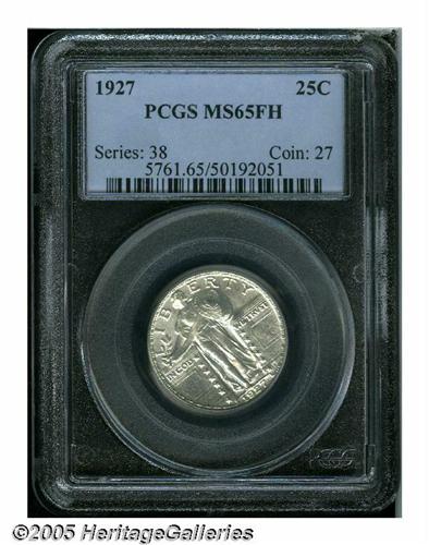 <B>1927<25C> MS65 Full Head PCGS.</B></I> A radiant, untoned Gem that would be perfect for the collector looking for a high grade representative of Hermon MacNeil's classic design. The design elements are sharply struck, and the surfaces are devoid of mentionable marks. Population: 89 in 65, 44 finer (6/05).