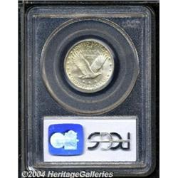 <B>1927<25C> MS66 Full Head PCGS.</B></I> Exquisitely preserved, this Premium Gem displays frosty luster and pastel-yellow patina atop the surfaces. As is usual for most of the Standing Liberty quarter series, parts of Liberty's shield lacks full definition. Population: 34 in 66, 5 finer (7/04). <BR><BR><B>Important notice:</B> Heritage usually auctions material at the rate of 200-250 lots per hour. On some occasions eBay Live bid software or the Internet may not be able to keep up with the pace of the auction. We recommend placing a realistic absentee bid now as insurance to avoid disappointment. Occasionally the auctioneer may eliminate or reject an eBay Live bid, and the auctioneer may also reopen a lot after the close of the eBay live bidding (usually because we missed an audience bid), and may reject your bid even if it shows you as the winning bidder. By bidding via eBay Live, you agree that Heritage may award the lot to another bidder at its sole discretion under the circumstances described above or any other reasonable circumstances. Since eBay bids are not shown to us until we open the lot on the floor, we treat those bids just like floor bids. In most cases the floor responds before the eBay bid is presented to us, due to Internet lag time, so for consistency we have made it a policy that floor bids are always considered first over tie eBay live bids. Also please note that all Heritage lots purchased through eBay Live carry a 20% Buyer's Premium. Please make sure you read the Terms and Conditions before you bid. </span></font></tr></table></td></tr></table>