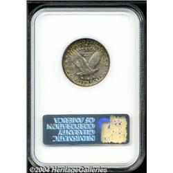 <B>1927<25C> MS66 NGC.</B></I> Mottled light-green, burnt-orange, violet, and crimson toning clings to strongly lustrous surfaces that are seemingly free of significant abrasions. A small mark on Liberty's right leg just above the knee is not bothersome. While nicely detailed for the most part, some softness is seen in the central obverse, on the two bottom stars, on the eagle's breast, and on some of the feathers of the left wing. Population: 7 in 66, 1 finer (5/04). <BR><BR><B>Important notice:</B> Heritage usually auctions material at the rate of 200-250 lots per hour. On some occasions eBay Live bid software or the Internet may not be able to keep up with the pace of the auction. We recommend placing a realistic absentee bid now as insurance to avoid disappointment. Occasionally the auctioneer may eliminate or reject an eBay Live bid, and the auctioneer may also reopen a lot after the close of the eBay live bidding (usually because we missed an audience bid), and may reject your bid even if it shows you as the winning bidder. By bidding via eBay Live, you agree that Heritage may award the lot to another bidder at its sole discretion under the circumstances described above or any other reasonable circumstances. Since eBay bids are not shown to us until we open the lot on the floor, we treat those bids just like floor bids. In most cases the floor responds before the eBay bid is presented to us, due to Internet lag time, so for consistency we have made it a policy that floor bids are always considered first over tie eBay live bids. Also please note that all Heritage lots purchased through eBay Live carry a 20% Buyer's Premium. Please make sure you read the Terms and Conditions before you bid. </span></font></tr></table></td></tr></table>
