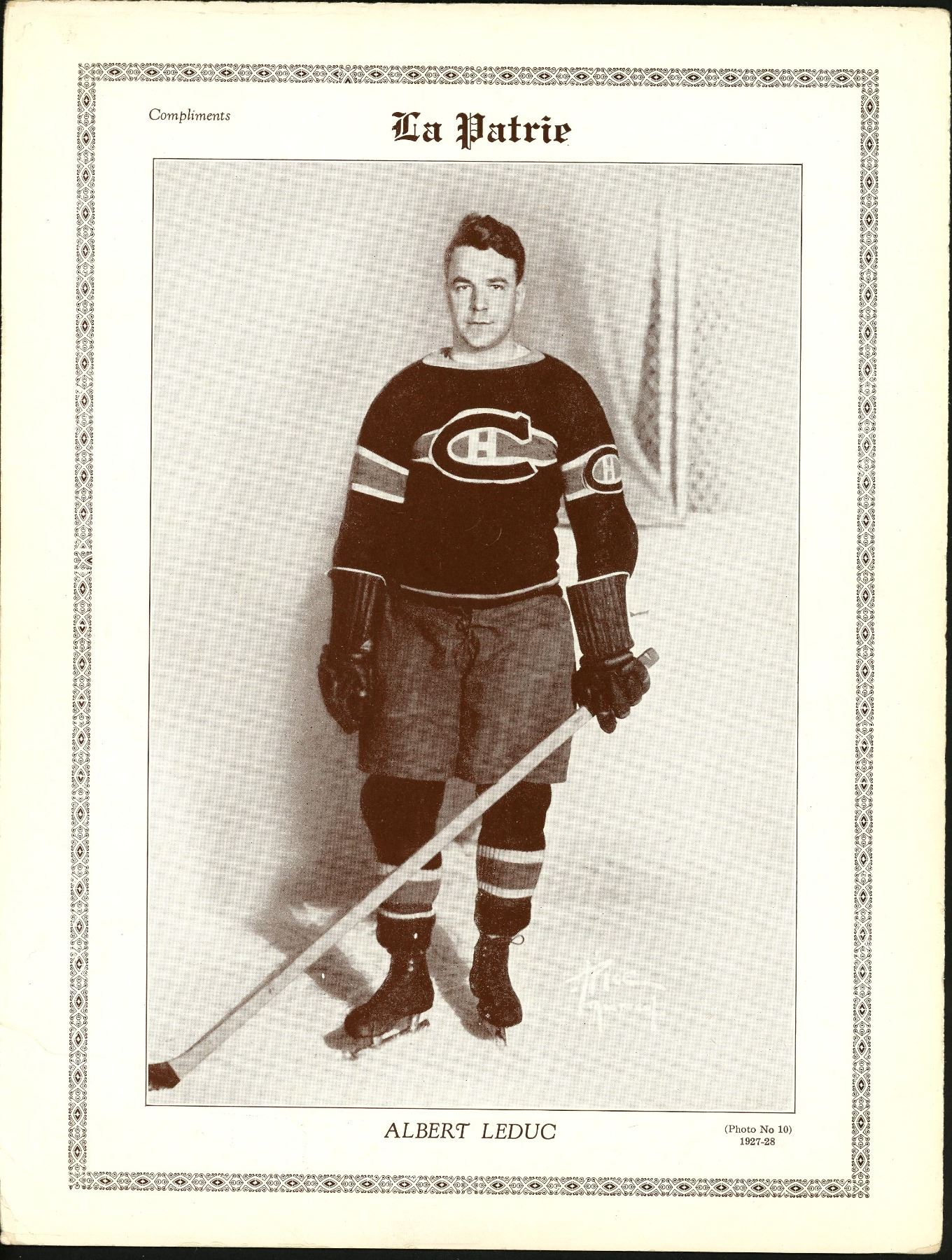 "Battleship" Leduc was a hard rock defenseman for the Habs and was a big part of back-to-back Stanley Cup championships in 1930 and 1931. He played an aggressive hard hitting style which created his rather unique nickname and backs up his 622 penalty minutes in 383 games stat line. This one grades VG with stress wrinkles, creasing and corner wear.