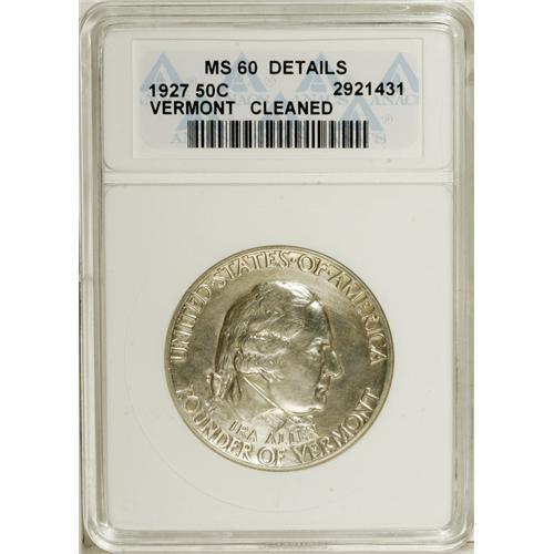 1927 50C Vermont--Cleaned--ANACS. MS60 Details. NG