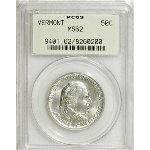 <B>1927 50C Vermont MS62 PCGS.</B></I> . PCGS Population (246/3358). NGC Census: (120/2379). Mintage: 28,142. Numismedia Wsl. Price for NGC/PCGS coin in MS62: $217. (#9401)<BR><BR><b>Shipping:</b> Coins & Currency (<a target="_blank" href="http://www.heritageauctions.com/common/shipping.php">view shipping information</a>)