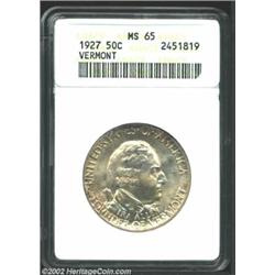 1927 50C Vermont MS65 ANACS. The borders have speckles of russet patina, while the centers are bathe