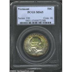 1927 50C Vermont MS65 PCGS. The margins have mauve and russet patina, while the centers have wisps o
