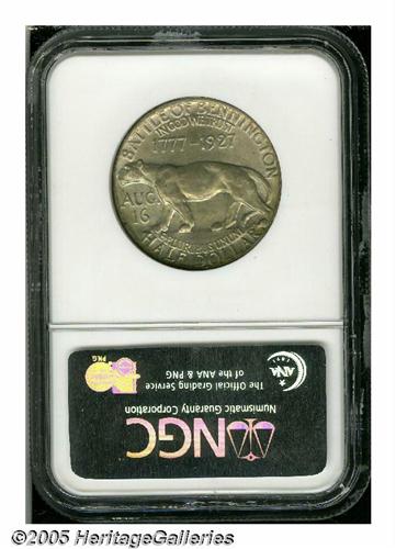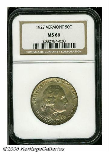 <B>1927<50C> Vermont MS66 NGC.</B></I> A highly lustrous, example with an overlay of olive and rose toning on each side. A high grade, well-balanced coin.<BR><I>From the Dr. Kurt Peters Collection.</B></I> From the Dr. Kurt Peters Collection.