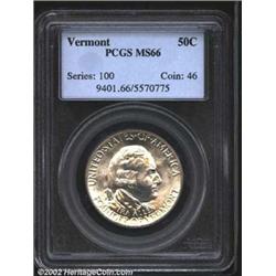 1927 50C Vermont MS66 PCGS. Frosty-white in sheen, the surfaces are free of both mentionable toning and distracting abrasions.From the Tom Valos Collection. Important notice: We expect to be auctioning lots at the rate of 200-250 per hour. Sometimes eBay Premier live bid software cannot keep up with that pace, so we strongly recommend that you place a realistic proxy bid now as insurance to avoid disappointment. Also please note that all Heritage/CAA lots purchased through eBay Premier carry a 20% Buyer's Premium.