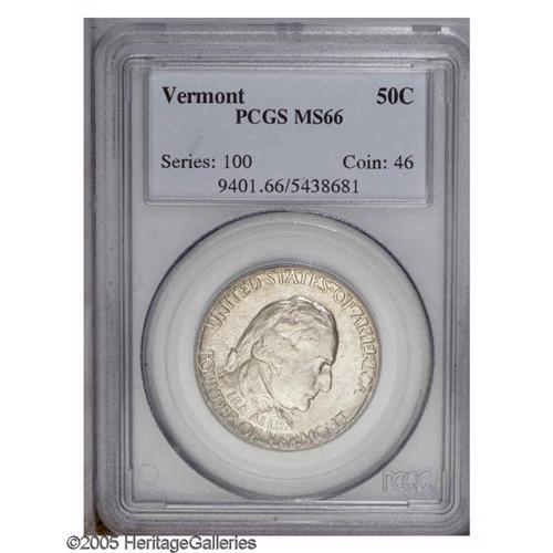 1927 50C Vermont MS66 PCGS. Potent luster sweeps acros 1927[50C] Vermont MS66 PCGS.