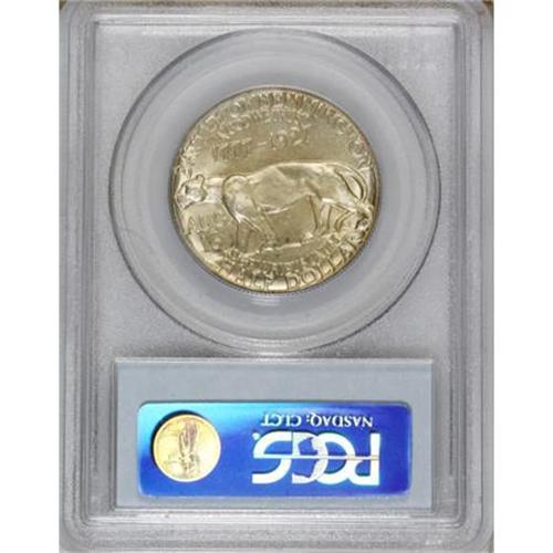 <B>1927 50C Vermont MS66 PCGS.</B></I> Smooth, subtle luster shines beneath rich sea-green and cream patina. A few flecks of deeper color appear on Ira Allen's well-defined portrait, though the corresponding surfaces are practically mark-free.<BR><BR><b>Shipping:</b> Coins & Currency (<a target="_blank" href="http://www.heritageauctions.com/common/shipping.php">view shipping information</a>)
