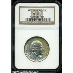 <table><tr><td><TABLE cellSpacing=0 cellPadding=0 width="100%" bgColor=#000000 border=0><TBODY> <TR><TD width="100%"><TABLE cellSpacing=1 cellPadding=3 width="100%" border=0><TBODY><TR><TD width="100%" bgColor=#79735c><FONT face=arial color=#ffffff size=3><B>Description</B> </FONT></TD></TR><TR><TD width="100%" bgColor=#ffffff><FONT face=arial size=2><B>1927 50C Vermont MS67 NGC.</B></I> The bright, satiny mint luster flows uninterrupted across both sides and the face of Ira Allen is unimpaired by even the smallest abrasions. Much original brilliance is seen in the centers with rich golden-brown toning around the margins. Undoubtedly one of the finest Vermont halves in existence, both from a technical as well as an aesthetic viewpoint. Population: 16 in 67, 1 finer (7/03). </FONT></TD></TR></TBODY></TABLE></TD></TR></TBODY></TABLE><BR><A name=PricesRealized></A><TABLE cellSpacing=0 cellPadding=0 width="100%" bgColor=#000000 border=0><TBODY><TR><TD width="100%"><TABLE cellSpacing=1 cellPadding=3 width="100%" border=0><TBODY><TR><TD width="100%" bgColor=#79735c><A name=PR><FONT face=arial color=#ffffff size=3><B>Previous Prices from Heritage Auctions</B> </FONT></A></TD></TR><TR><TD bgColor=#f6f6ed><TABLE cellSpacing=0 cellPadding=0 width="100%" border=1><TBODY><TR><TD align=middle width="33%"><B>Date</B></TD><TD align=middle width="33%"><B>Service</B></TD><TD align=middle width="33%"><B>Price</B></TD></TR><TR bgColor=whitesmoke><TD width="33%"><B>01/11/2003</B></TD><TD width="33%">PCGS</TD><TD width="33%">$8,912.50</TD></TR><TR bgColor=whitesmoke><TD width="33%"><B>01/11/2003</B></TD><TD width="33%">PCGS</TD><TD width="33%">$4,657.50</TD></TR><TR bgColor=whitesmoke><TD width="33%"><B>10/06/2000</B></TD><TD width="33%">NGC</TD><TD width="33%">$1,955.00</TD></TR><TR bgColor=whitesmoke><TD width="33%"><B>08/13/1999</B></TD><TD width="33%">NGC</TD><TD width="33%">$3,105.00</TD></TR><TR bgColor=whitesmoke><TD width="33%"><B>01/06/1996</B></TD><TD width="33%">PCGS</TD><TD width="33%">$4,180.00</TD></TR></TBODY></TABLE></TD></TR><TR><TD bgColor=#ffffff><FONT face=arial size=1 ?>PLEASE NOTE: All prices realized reflect the final hammer price PLUS the buyer's premium in auctions that charge a buyer's premium. Each item has a notation at the top of the listing indicating whether that lot included a buyer's premium. Example: A item that sells with a final hammer price of $100 and a 20% buyer's premium will display with a price realized of $120. All information listed is intended to be as accurate as possible, but errors are possible. Please use this guide carefully and inform us of any inaccuracies. </FONT></TD></TR></TBODY></TABLE></TD></TR></TBODY></TABLE><BR><TABLE cellSpacing=0 cellPadding=0 width="100%" bgColor=#000000 border=0><TBODY><TR><TD width="100%"><TABLE cellSpacing=1 cellPadding=3 width="100%" border=0><TBODY><TR><TD width="100%" bgColor=#79735c colSpan=6><FONT face=arial color=#ffffff size=3><B>Price Guide*</B> </FONT></TD></TR><TR bgColor=#f6f6ed><TD align=middle><B>Grade</B> </TD><TD align=middle><B>Coin World<BR>(Trends)</B> </TD><TD align=middle><B>Numismedia<BR>Retail</B> </TD><TD align=middle><B>Numismedia<BR>Wholesale</B> </TD><TD align=middle><B>Coin<BR>Universe</B> </TD><TD align=middle><B>Heritage<BR>Value Index</B> </TD></TR><TR bgColor=#ffffff><TD align=middle>66</TD><TD align=right>$2,300.00</TD><TD align=right>---</TD><TD align=right>$1,325.00</TD><TD align=right>$2,300.00</TD><TD align=right>$1,426.88</TD></TR><TR style="FONT-WEIGHT: bold" bgColor=#cccfdd><TD align=middle>67</TD><TD align=right>$6,000.00</TD><TD align=right>---</TD><TD align=right>$2,850.00</TD><TD align=right>$5,750.00</TD><TD align=right>$4,112.50</TD></TR><TR bgColor=#ffffff><TD align=middle>68</TD><TD align=right>---</TD><TD align=right>---</TD><TD align=right>---</TD><TD align=right>---</TD><TD align=right>---</TD></TR><TR bgColor=#ffffff><TD colSpan=6><FONT size=1>*All information listed is intended to be as accurate as possible, but errors are possible. No item may be returned or refused based on this information which is provided as a service to our customers. You should contact each pricing source directly to determine the accuracy of this information. </FONT></TD></TR></TBODY></TABLE></TD></TR></TBODY></TABLE><BR><TABLE cellSpacing=0 cellPadding=0 width="100%" bgColor=#000000 border=0><TBODY><TR><TD width="100%"><TABLE cellSpacing=1 cellPadding=3 width="100%" border=0><TBODY><TR><TD width="100%" bgColor=#79735c><FONT face=arial color=#ffffff size=3><B>Population Guide</B> </FONT></TD></TR><TR bgColor=#ffffff><TD align=middle><!-- Begin Output of Population Grid--><TABLE cellSpacing=0 cellPadding=0 width="100%" border=0><TBODY><TR><TD vAlign=center><TABLE cellSpacing=0 width="100%" border=1 cellsadding="3"><TBODY><TR><TD vAlign=center><TABLE cellSpacing=0 cellPadding=3 width="100%" border=1><TBODY><TR><TD vAlign=center align=middle bgColor=#f0f1e8 colSpan=2 <CENTER><FONT face=Arial size=2><B>PCGS Pop </B></FONT><CENTER></CENTER></TD><TD vAlign=center align=middle bgColor=#f0f1e8 colSpan=2><CENTER><FONT face=Arial size=2><B>NGC Pop</B></CENTER></FONT></TD></TR><TR><TD vAlign=center><FONT face=Arial size=2>(67)</FONT> </TD><TD vAlign=center align=right><FONT face=Arial size=2>13</FONT> </TD><TD vAlign=center><FONT face=Arial size=2>(67)</FONT> </TD><TD vAlign=center align=right><FONT face=Arial size=2>16</FONT> </TD></TR><TR><TD vAlign=center><FONT face=Arial size=2>(>67)</FONT> </TD><TD vAlign=center align=right><FONT face=Arial size=2>0</FONT> </TD><TD vAlign=center><FONT face=Arial size=2>(>67)</FONT> </TD><TD vAlign=center align=right><FONT face=Arial size=2>1</FONT> </TD></TR></TBODY></TABLE></TD></TR></TBODY></TABLE></TD></TR></TBODY></TABLE><!-- End Output of Population Grid--></TD></TR></TBODY></TABLE></TD></TR></TBODY></TABLE><BR><TABLE cellSpacing=0 cellPadding=0 width="100%" bgColor=#000000 border=0><TBODY><TR> Important notice: Heritage usually auctions material at the rate of 200-250
