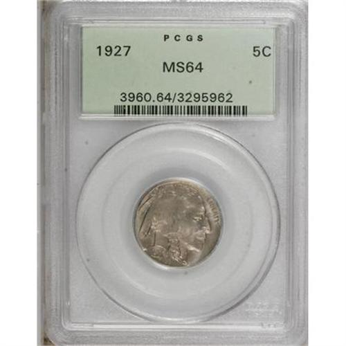 <B>1927 5C MS64 PCGS.</B></I> . PCGS Population (543/867). NGC Census: (302/339). Mintage: 37,981,000. Numismedia Wsl. Price for NGC/PCGS coin in MS64: $89. (#3960)<BR><BR><B>Coin Engraver:</B> James E. Fraser<BR><BR><b>Shipping:</b> Coins & Currency (<a target="_blank" href="http://www.heritageauctions.com/common/shipping.php">view shipping information</a>)