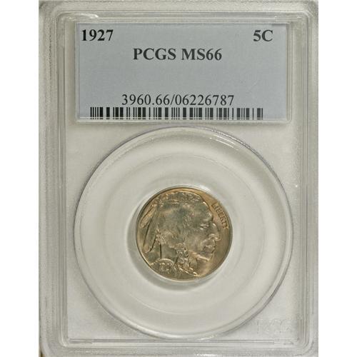 <B>1927 5C MS66 PCGS.</B></I> PCGS Population (238/5). NGC Census: (66/8). Mintage: 37,981,000. Numismedia Wsl. Price: $610. (#3960)<BR><BR><b>Shipping:</b> Coins & Currency (<a target="_blank" href="http://www.heritageauctions.com/common/shipping.php">view shipping information</a>)