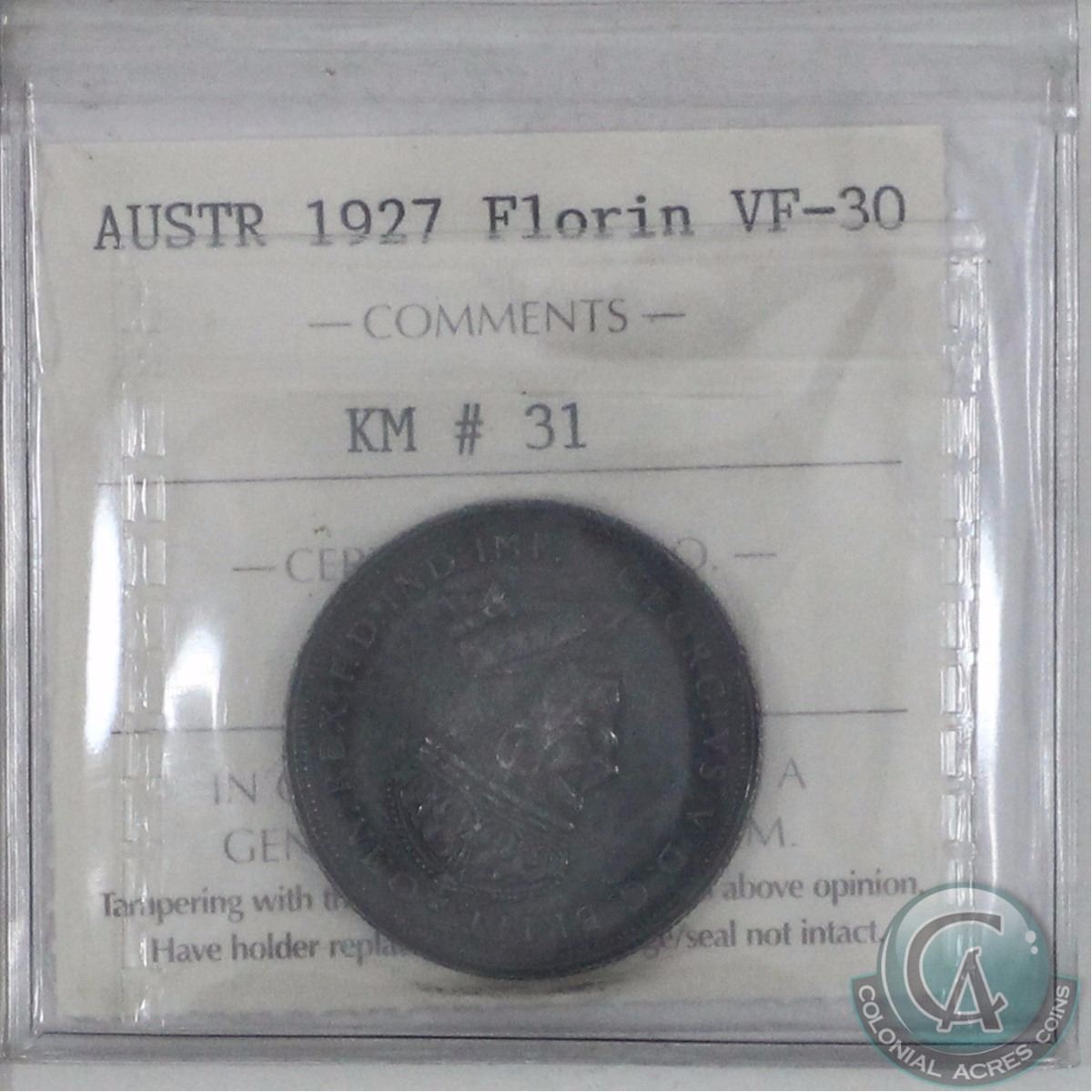 1927 Australia Florin ICCS Certified VF-30; KM #31.