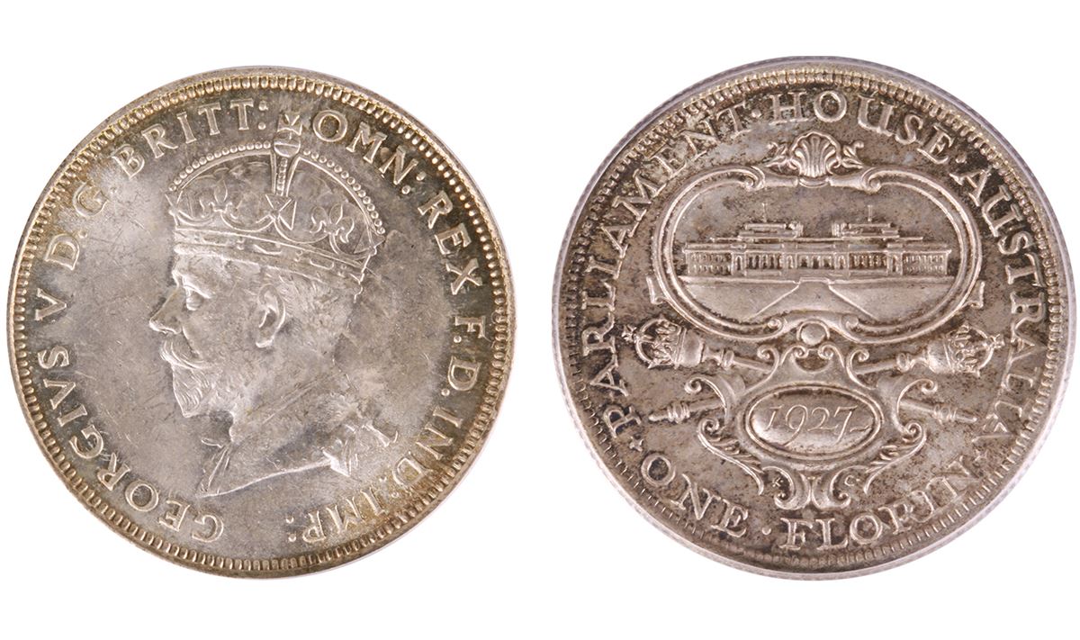1927 Australian KGV Canberra Florin - PCGS MS63