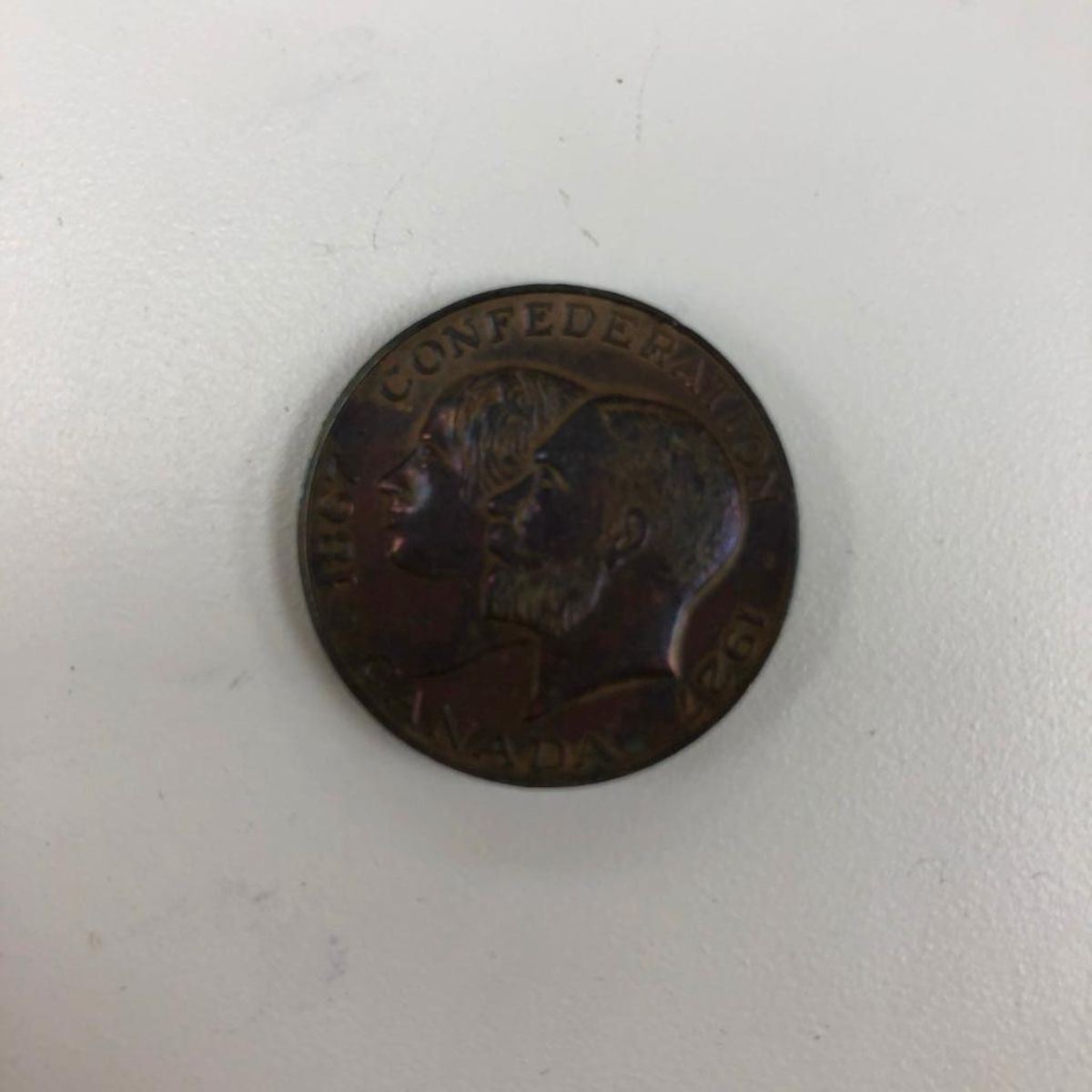 Obverse A picture of a man and a woman overlapping each other. On the left side it says '1867', on the right, it says '1927'. Above the two people it says 'CONFEDERATION', below them it says 'CANADA'. Lettering: 1867 · CONFEDERATION · 1927 · CANADA · Reverse A picture of the Canadian coat of arms (without the lion, horse, or flags, it's just the shield, very basic). Around it there is a wreath of leaves. And a crown at the top of the shield. Below the shield on a small banner it says 'A MARI VSQVE AD MARE'. Lettering: A MARI VSQVE AD MARE Translation: A Mari Usque Ad Mare is the Canadian national motto From Sea to Sea Specifications Country: * Tokens * (Canada - Souvenir Tokens) Type: Token Year: 1927 Composition: Bronze Weight: 11.2 g Diameter: 25.48 mm Thickness: 2.77 mm Shape: Round