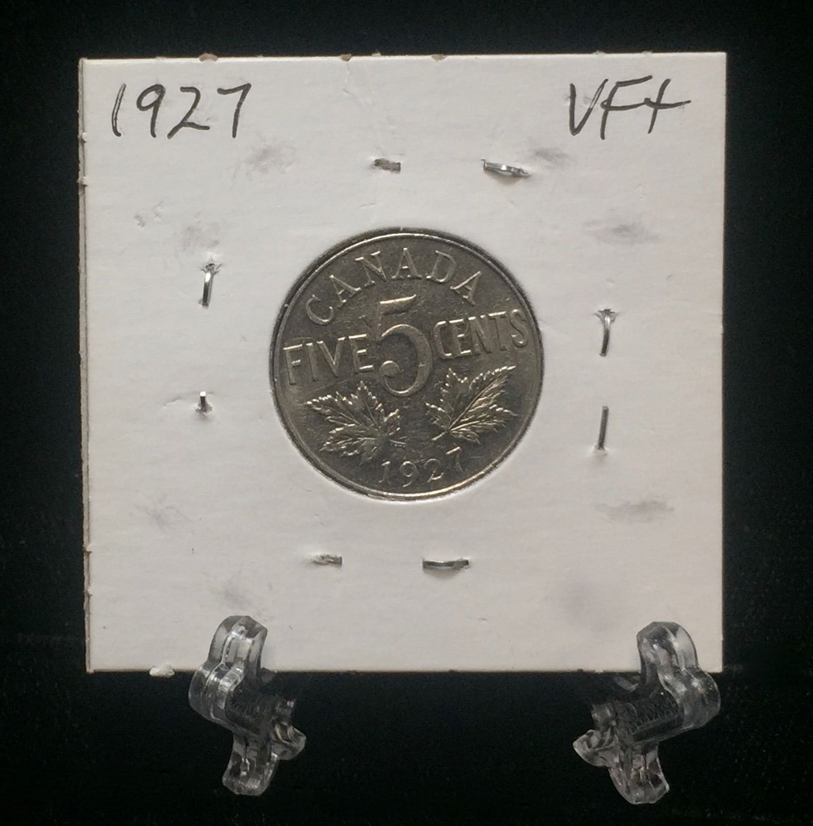 Lot 312; 1927 Canada 5-Cents Nickel Very Fine, Nice Detail, King George V Effigy, Condition as Pictured
