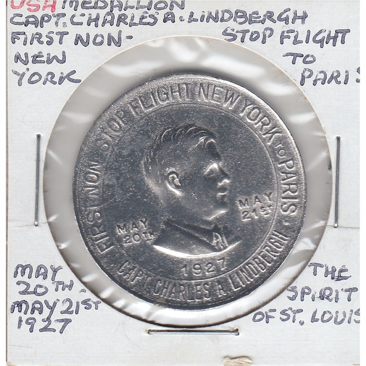 1927 Capt. Charles A. Lindbergh First Non-Stop Flight New York to Paris Commemorative Token. 32mm