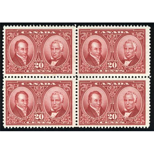 <Our item number 138678><B>1927. Confederation and Historical Issues Complete. Scott <B>141-5, 146-8</B>. Unitrade 141-5, 146-8; C$540.</B> In F/VF, LH/NH blocks of four. All figured as LHalthough some singles are NH. Block of 4. LH/NH. <B>F.-V.F.</B> <BR>Estimated Value $150 - 250. <BR><BR>Our item number 138678<BR><IMAGES><P ALIGN="CENTER"><IMG SRC="http://www.goldbergcoins.net/liveauction/49jpegs/138678.jpg"> </P></IMAGES>