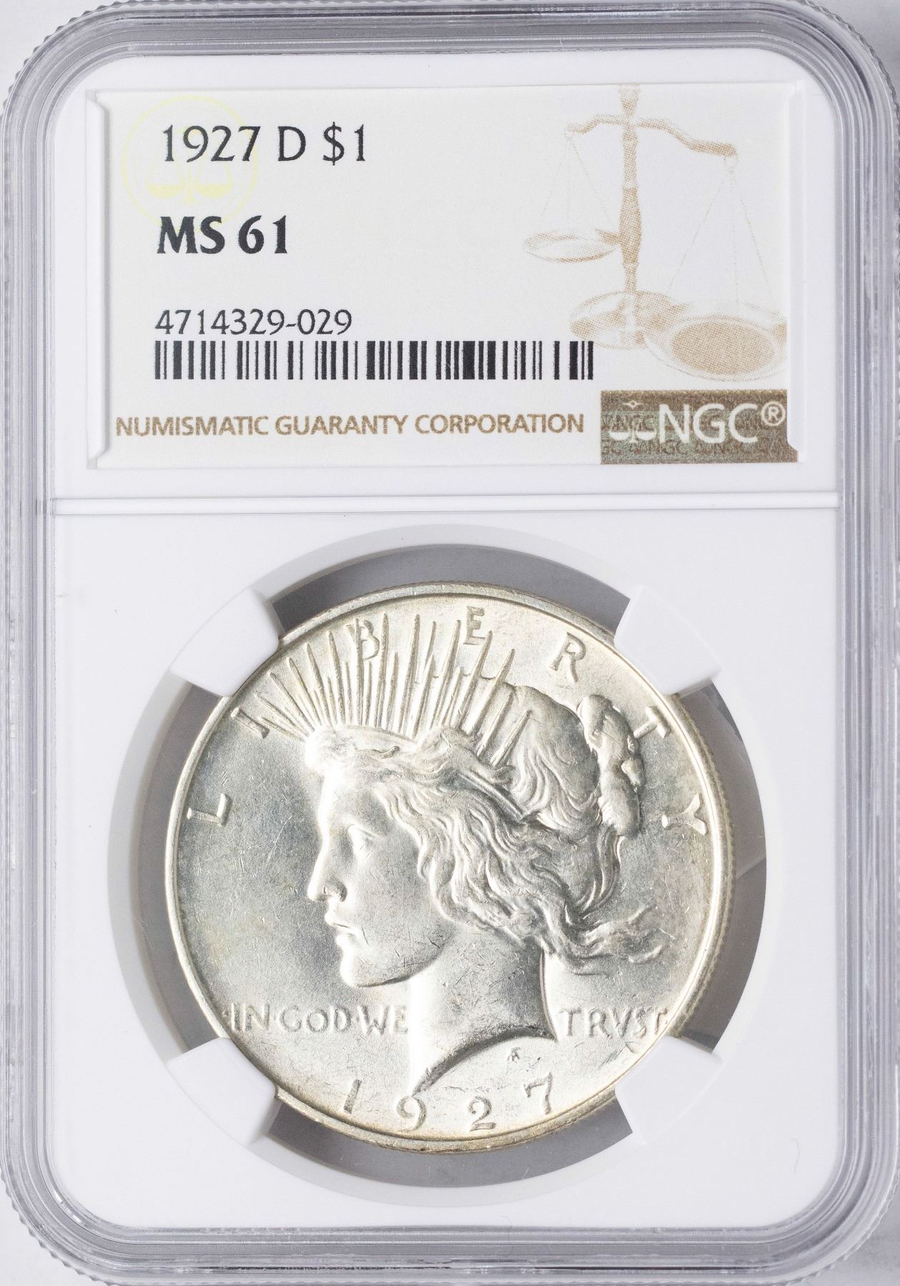 One 1927-D $1 Peace Silver Dollar Coin NGC MS61.