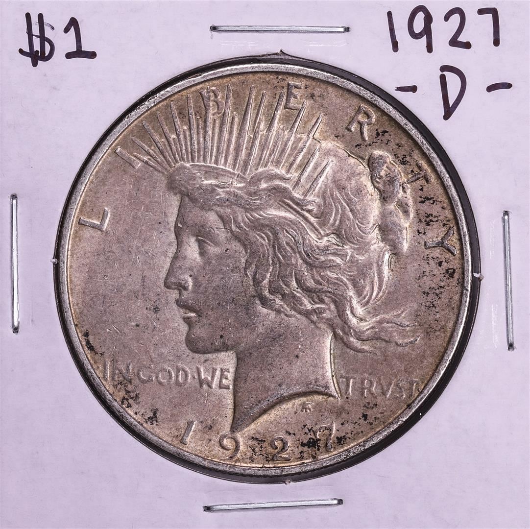 One 1927-D $1 Peace Silver Dollar Coin.