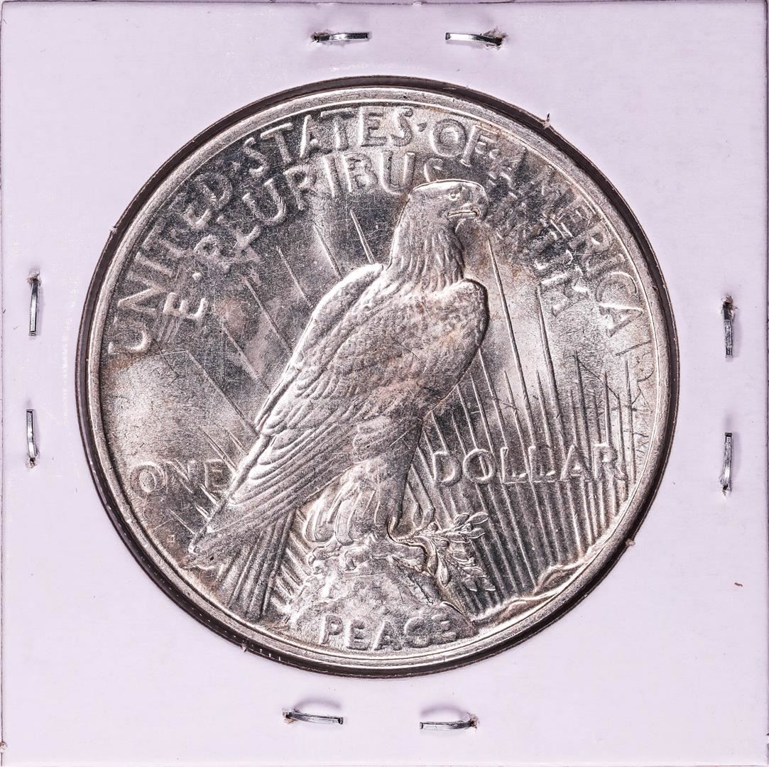 One 1927-D $1 Peace Silver Dollar Coin.