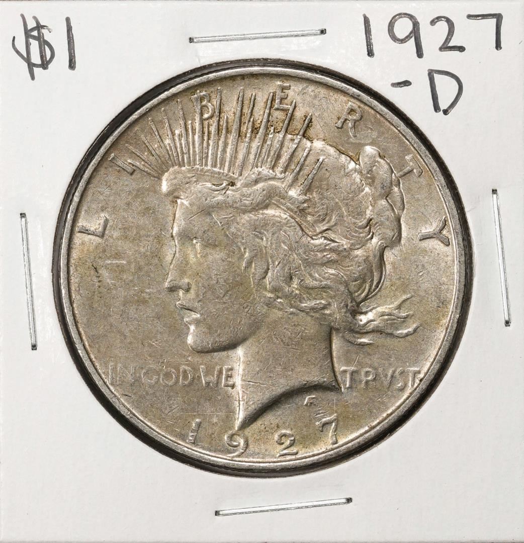 One 1927-D $1 Peace Silver Dollar Coin.