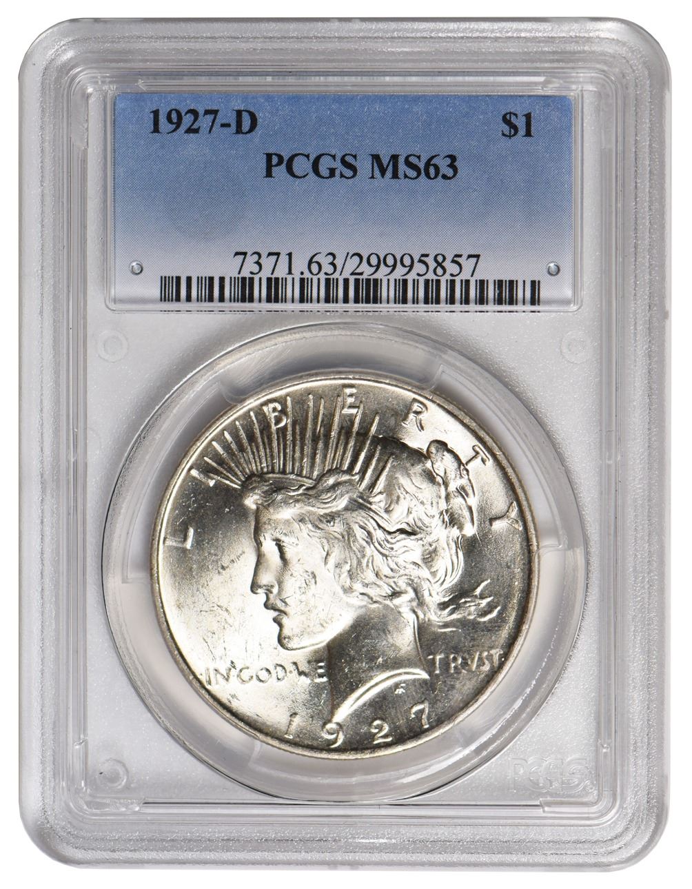 One 1927-D $1 Peace Silver Dollar PCGS MS63.
