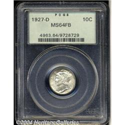 <B>1927-D<10C> MS64 Full Bands PCGS.</B></I> Original luster interspersed with hints of natural patina. A few minor blemishes sit on the near-Gem surfaces that limit the grade. A single black toning spot is noted on Liberty's cheek.<BR><I>From The Velma & Bowie Lynch Collection, Part Four.</B></I> <BR><BR><B>Important notice:</B> Heritage usually auctions material at the rate of 200-250 lots per hour. On some occasions eBay Live bid software or the Internet may not be able to keep up with the pace of the auction. We recommend placing a realistic absentee bid now as insurance to avoid disappointment. Occasionally the auctioneer may eliminate or reject an eBay Live bid, and the auctioneer may also reopen a lot after the close of the eBay live bidding (usually because we missed an audience bid), and may reject your bid even if it shows you as the winning bidder. By bidding via eBay Live, you agree that Heritage may award the lot to another bidder at its sole discretion under the circumstances described above or any other reasonable circumstances. Since eBay bids are not shown to us until we open the lot on the floor, we treat those bids just like floor bids. In most cases the floor responds before the eBay bid is presented to us, due to Internet lag time, so for consistency we have made it a policy that floor bids are always considered first over tie eBay live bids. Also please note that all Heritage lots purchased through eBay Live carry a 20% Buyer's Premium. Please make sure you read the Terms and Conditions before you bid. </span></font></tr></table></td></tr></table>