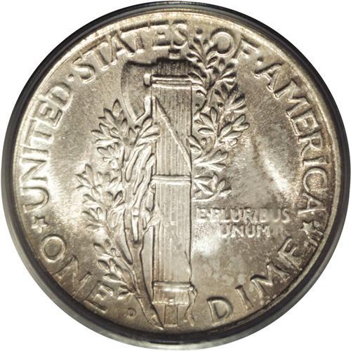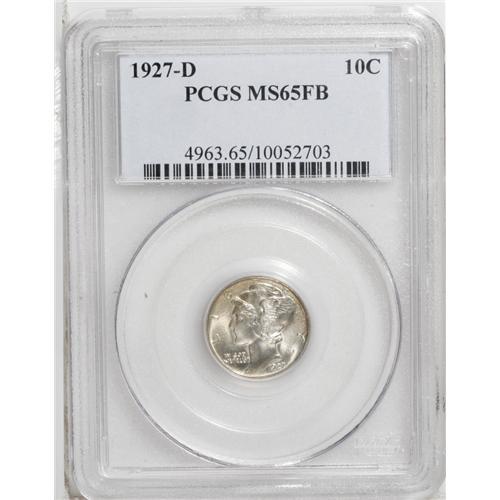 <B>1927-D<10C> MS65 Full Bands PCGS.</B></I> The central obverse and reverse motifs of this Gem are sharply defined with slight weakness detected along the borders. This is a pleasant example, and it is one of the better ones available to collectors. Both sides have bright luster with wispy champagne-gold toning near the peripheries. Population: 24 in 65, 8 finer (9/06).