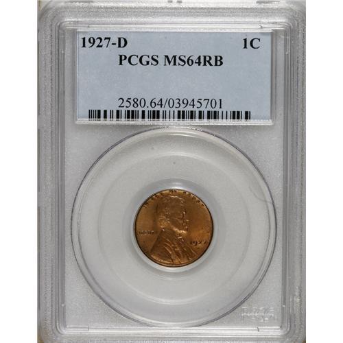<B>1927-D 1C MS64 Red and Brown PCGS.</B></I> PCGS Population (176/56). NGC Census: (104/49). Mintage: 27,170,000. Numismedia Wsl. Price: $150. (#2580)<BR><BR><b>Shipping:</b> Coins & Currency (<a target="_blank" href="http://www.heritageauctions.com/common/shipping.php">view shipping information</a>)