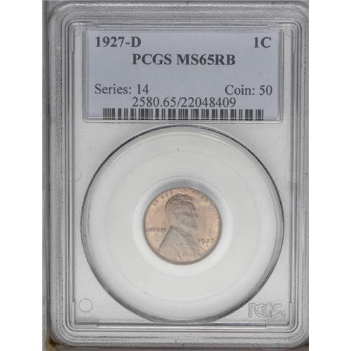 1927-D 1C MS65 Red and Brown PCGS. A satiny Gem with d 1927-D[1C] MS65 Red and Brown PCGS.