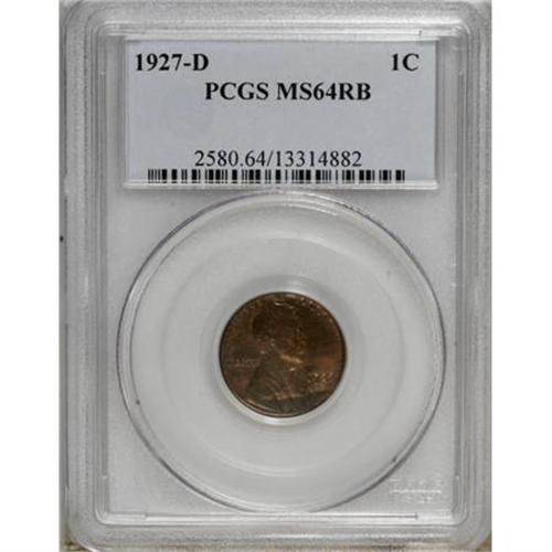 <B>1927-D 1C MS64 Red and Brown PCGS.</B></I> PCGS Population (185/57). NGC Census: (108/49). Mintage: 27,170,000. Numismedia Wsl. Price for NGC/PCGS coin in MS64: $150. (#2580)<BR><BR><B>Coin Engraver:</B> Victor D. Brenner<BR><BR><b>Shipping:</b> Coins & Currency (<a target="_blank" href="http://www.heritageauctions.com/common/shipping.php">view shipping information</a>)