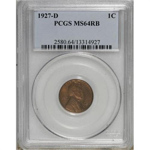 <B>1927-D 1C MS64 Red and Brown PCGS.</B></I> PCGS Population (185/57). NGC Census: (108/49). Mintage: 27,170,000. Numismedia Wsl. Price for NGC/PCGS coin in MS64: $150. (#2580)<BR><BR><B>Coin Engraver:</B> Victor D. Brenner<BR><BR><b>Shipping:</b> Coins & Currency (<a target="_blank" href="http://www.heritageauctions.com/common/shipping.php">view shipping information</a>)