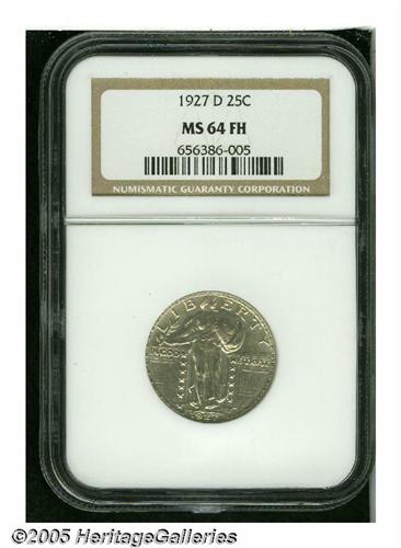 <B>1927-D<25C> MS64 Full Head NGC.</B></I> Essentially untoned with an unusually sharp strike for this otherwise common issue. Somewhat lackluster with a handful of small, stray marks. Population: 77 in 64 Full Head, 36 finer (6/05).