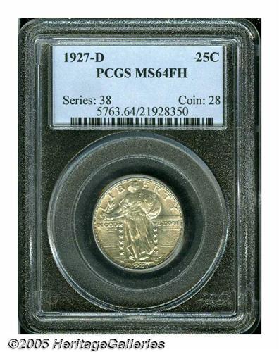 <B>1927-D<25C> MS64 Full Head PCGS.</B></I> Uncommonly sharp for the issue, with hard, metallic luster and a light overlay of original patina on each side. Worth a close look.
