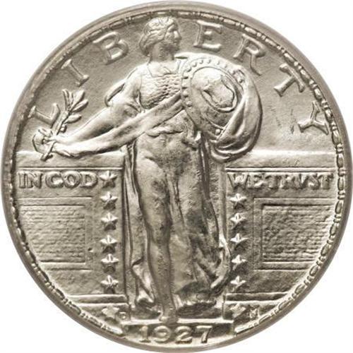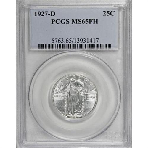 <B>1927-D 25C MS65 Full Head PCGS.</B></I> An amazing Gem with brilliant, untoned surfaces and satiny luster. Both sides are fully detailed, and the reverse fields are slightly reflective. The Denver Mint coins of this type are seldom found sharp, with Full Head pieces particularly elusive. Population: 67 in 65, 13 finer (8/07).<BR><BR><B>Coin Engraver:</B> Hermon A. MacNeil<BR><BR><b>Shipping:</b> Coins & Currency (<a target="_blank" href="http://www.heritageauctions.com/common/shipping.php">view shipping information</a>)
