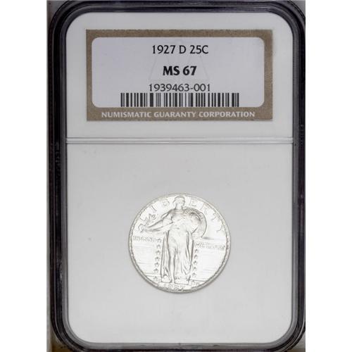 "1927-D 25C MS67 NGC. Sharply struck, sa"