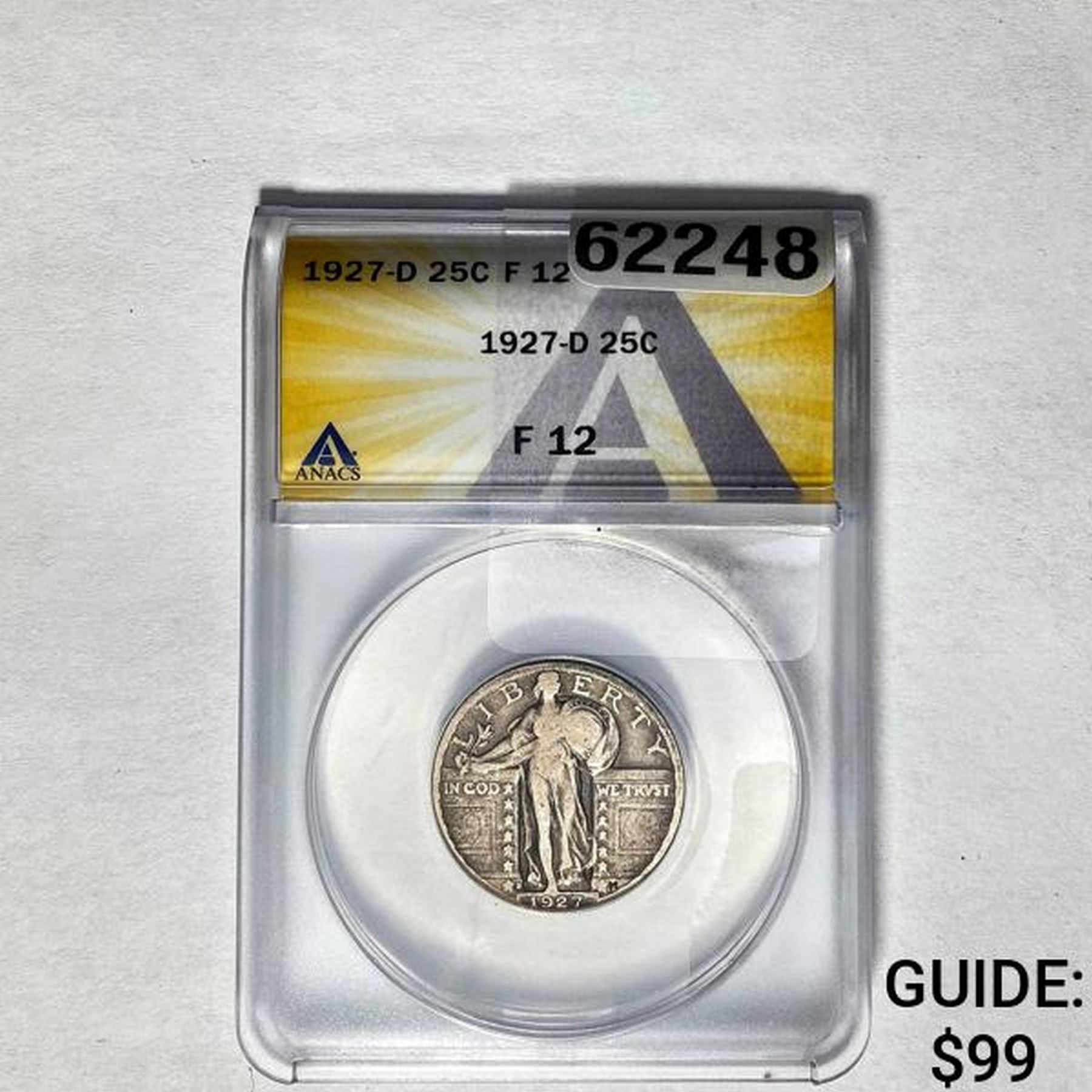 1927-D 25C Standing Liberty ANACS F 12