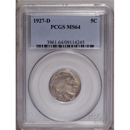 <B>1927-D<5C> MS64 PCGS.</B></I> Delicate rose-gray pastels endow this shimmering and unmarked near-Gem. Only the customary incompleteness of strike in the centers denies an even higher grade.