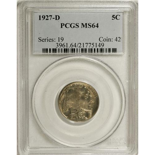 1927-D 5C MS64 PCGS. PCGS Population (318/49). NGC