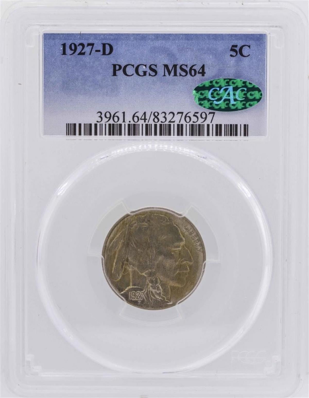 One 1927-D Buffalo Nickel Coin PCGS MS64 CAC. PCGS Certified.