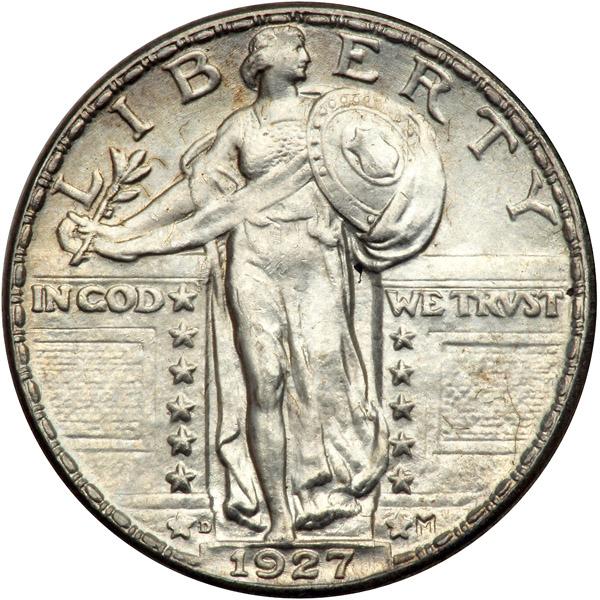 1927-D Liberty Standing Quarter Dollar. PCGS graded MS-64. Very lightly toned with the head about ¾ full (PCGS # 5762) .